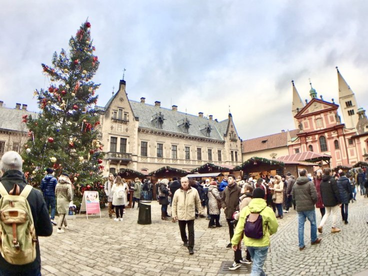 文章前面有提到,參觀城堡區四大景點—聖維特大教堂、舊皇宮(聖維特大教堂旁的黃色建築)、黃金巷、聖喬治教堂(上方照片的粉紅色教堂),都是要收費的。但有個省錢小秘訣就是,聖誕節期間可以免費參觀!