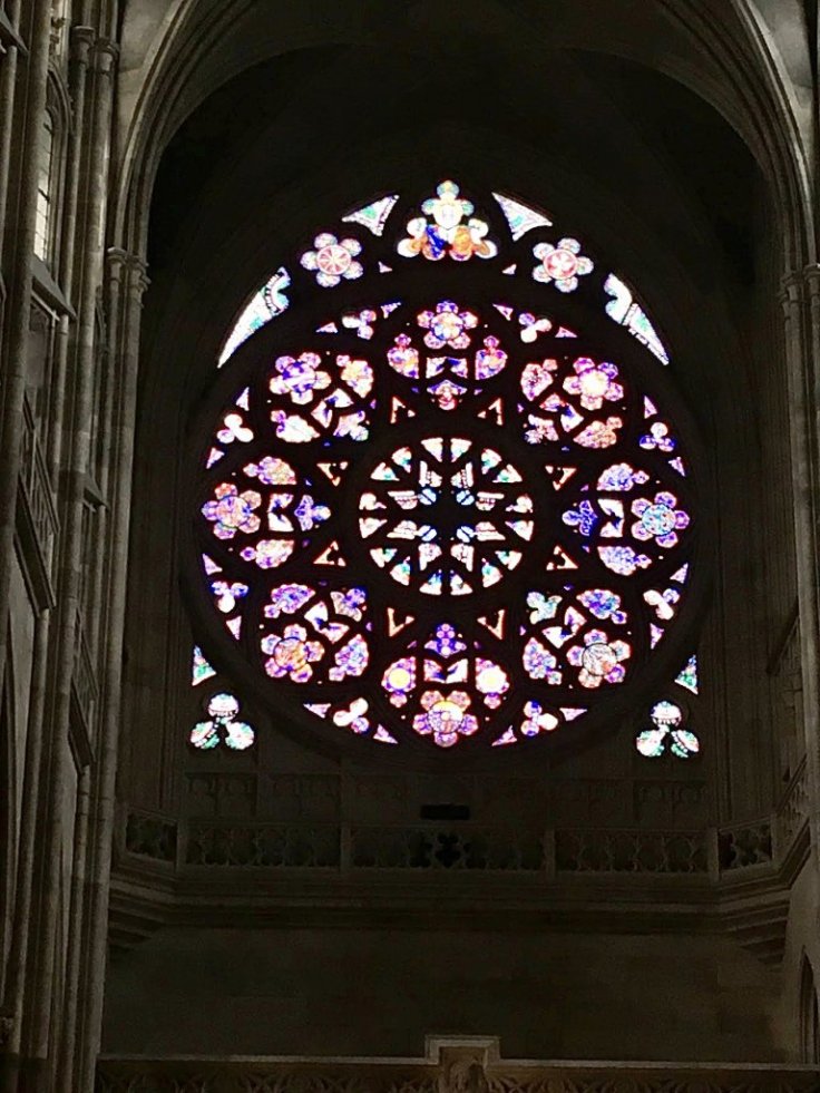 聖維特大教堂內必看的就是慕夏之窗(The Mucha Window)和玫瑰之窗(Rose Window)。慕夏之窗的位置在教堂左殿第三面牆上,由捷克著名藝術家阿爾豐斯・慕夏(Alfons Mucha)繪製,慕夏之窗描繪了天主教在波西米亞的起源。而玫瑰之窗則是在正門上方,是基謝拉(Frantisek Kysela)於1925至1927年間設計,描繪聖經裡創世紀的故事,要從教堂內部往外看才能看清楚彩繪。