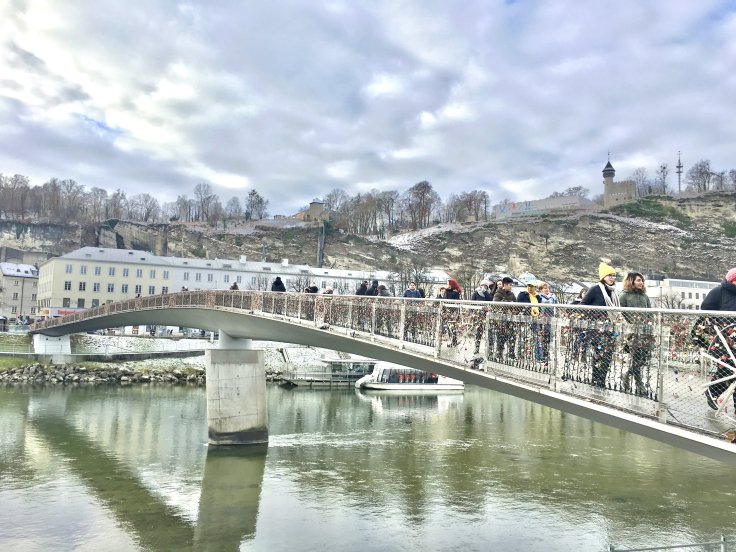 相較於馬克小橋本身,我個人更喜歡的是薩爾察赫河(Salzach)沿岸的風景。如果時間允許的話,一定要沿著河岸散步,從河岸邊仰望薩爾斯堡要塞真的很美喔!