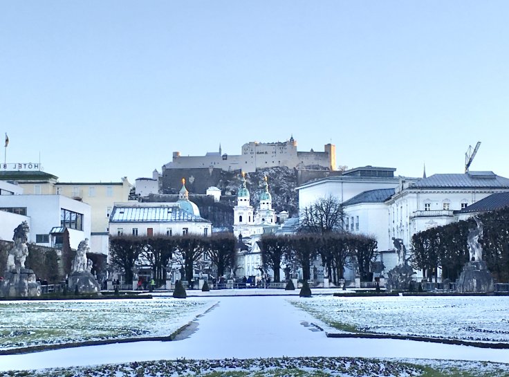 米拉貝爾宮建於1606年,一開始是采邑主教為了與情婦相處而建造的宮殿。爾後於18世紀整修成巴洛克風格,以電影《真善美》在此取景拍攝而聞名。從米拉貝爾宮花園拍攝薩爾斯堡要塞,是薩爾斯堡非常經典風景之一。也許是去的季節不對,冬天白茫茫一片的景色老實說並不算是令人驚艷,春天百花盛開的模樣會更美喔!