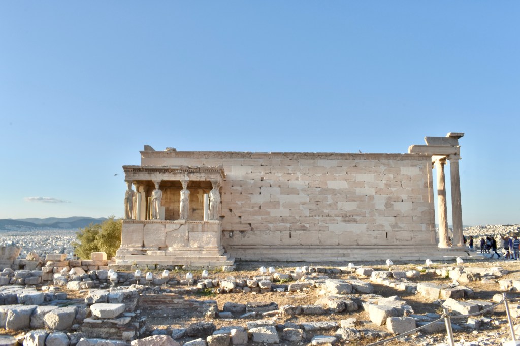 衛城還有最後一個必看的建築—伊瑞克提翁神廟,伊瑞克提翁神廟建於西元前421-406年,用來供奉雅典娜、波塞冬和傳說中的雅典國王伊瑞克提翁。