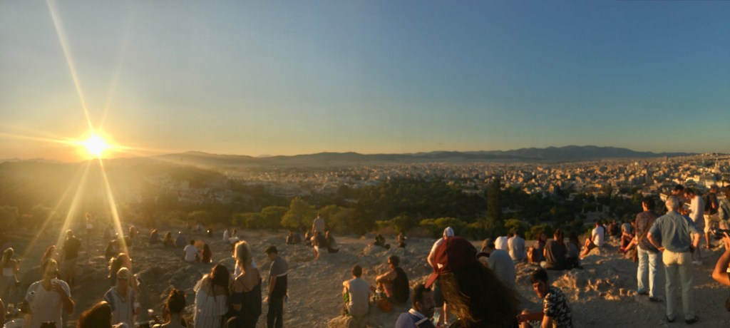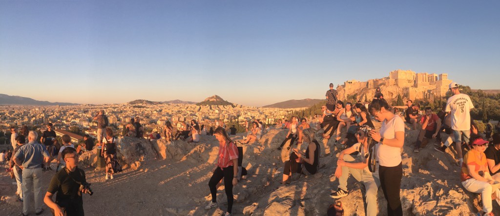 參觀完衛城後,我們跟著人潮走到Areopagus Hill,在這裡看到超美夕陽和衛城全景。Areopagus Hill其實一開始並不在我們規劃的行程中,但超棒的視野讓這裡成為我們這趟雅典旅程最喜歡的地方!