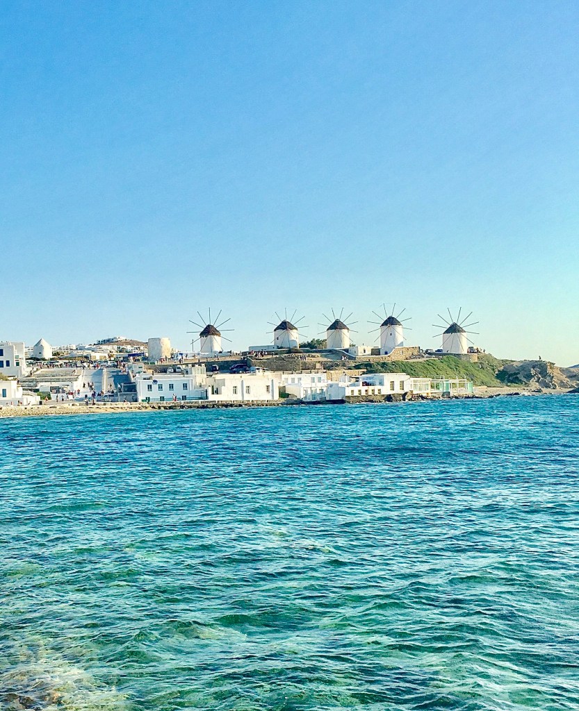 從戶外座位區往回看,還能看到米克諾斯經典的風車,視覺豐富度簡直是滿分,請各位務必將Kastro’s Restaurant收藏起來!