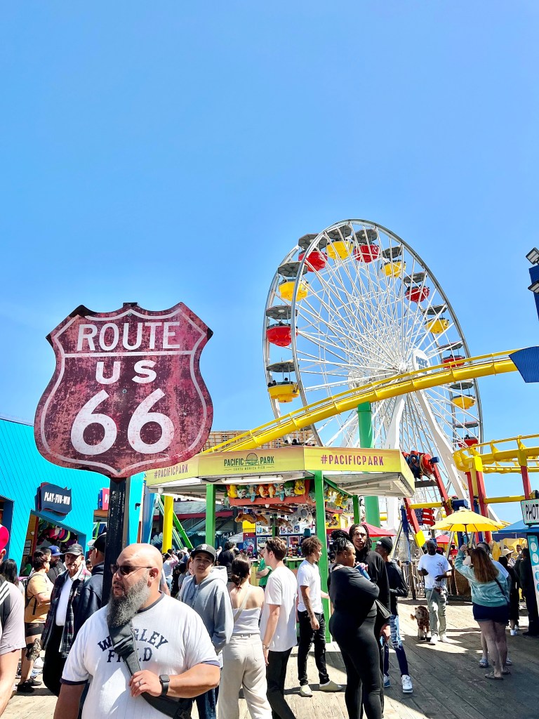 碼頭上66號公路的標誌,也是碼頭必拍景點!只要有研究過美國公路旅行,一定會知道號稱母親之路的66號公路,66號公路貫穿美國八大州,從芝加哥連貫到洛杉磯,並以聖塔莫尼卡為終點。這麼極具意義的標誌,當然是各國旅客搶著拍的重點~
