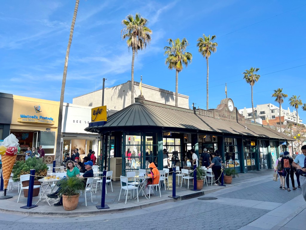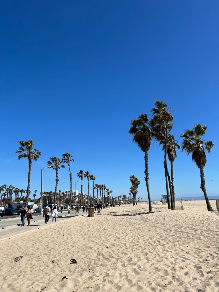 逛完碼頭,可以到碼頭旁邊沙灘散步,沙灘有規劃行人步道,走起來還滿舒適。如果時間足夠,南邊一點的威尼斯海灘(Venice Beach)也是熱門景點,相較碼頭旁的沙灘,有更多嬉皮小店和特色咖啡廳,是另一種氛圍喔!