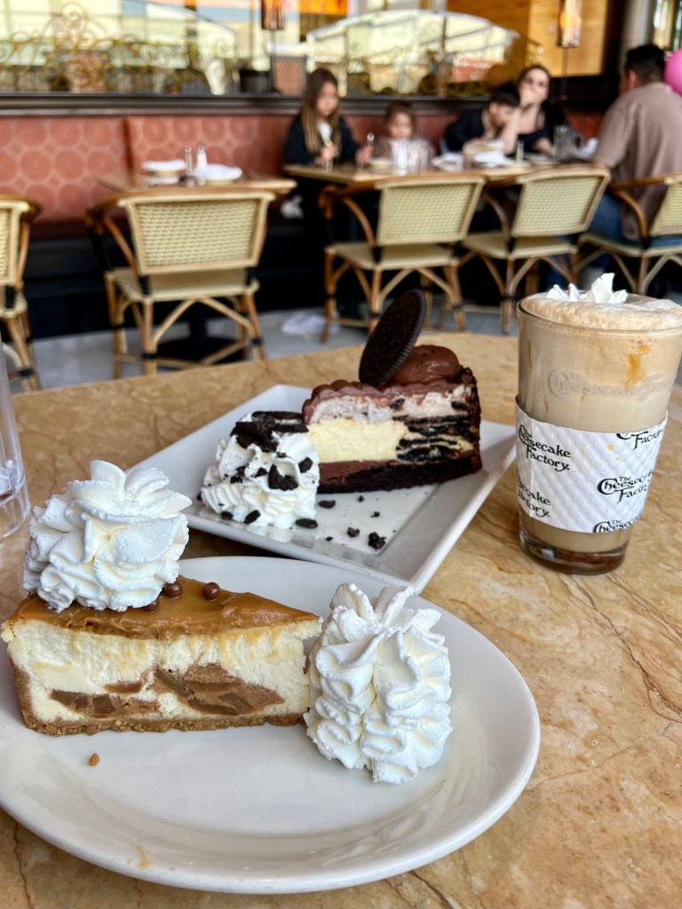 徒步區逛不夠的話,還有聖塔莫妮卡購物中心(Santa Monica Place)可以逛。我們在購物中心朝聖加州有名的The Cheesecake Factory,口味上非常美式(就是很甜的意思),整體來說不算精緻,走一個豪邁重口味路線。個人認為算好吃但也沒有到必吃,提供給大家參考~
