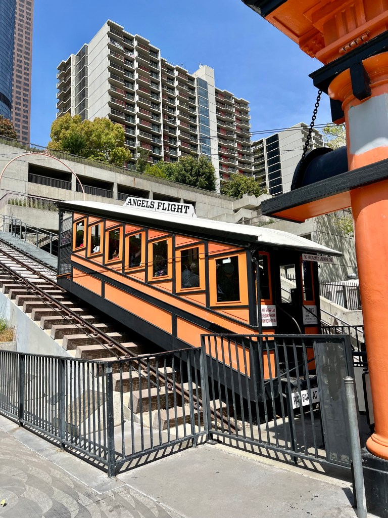 在中央市場吃完美食之後,可以走到市場對面的天使鐵路(Angels Flight Railway)逛逛。天使鐵路建於1901年,是世界上最短的纜車,全長只有99米,連接Hill Street及Olive Street兩地。起初天使鐵路的用途是提供居住在山坡上的居民通勤使用,後來因為電影《樂來越愛你》在此取景,讓天使鐵路人氣直線攀升。
