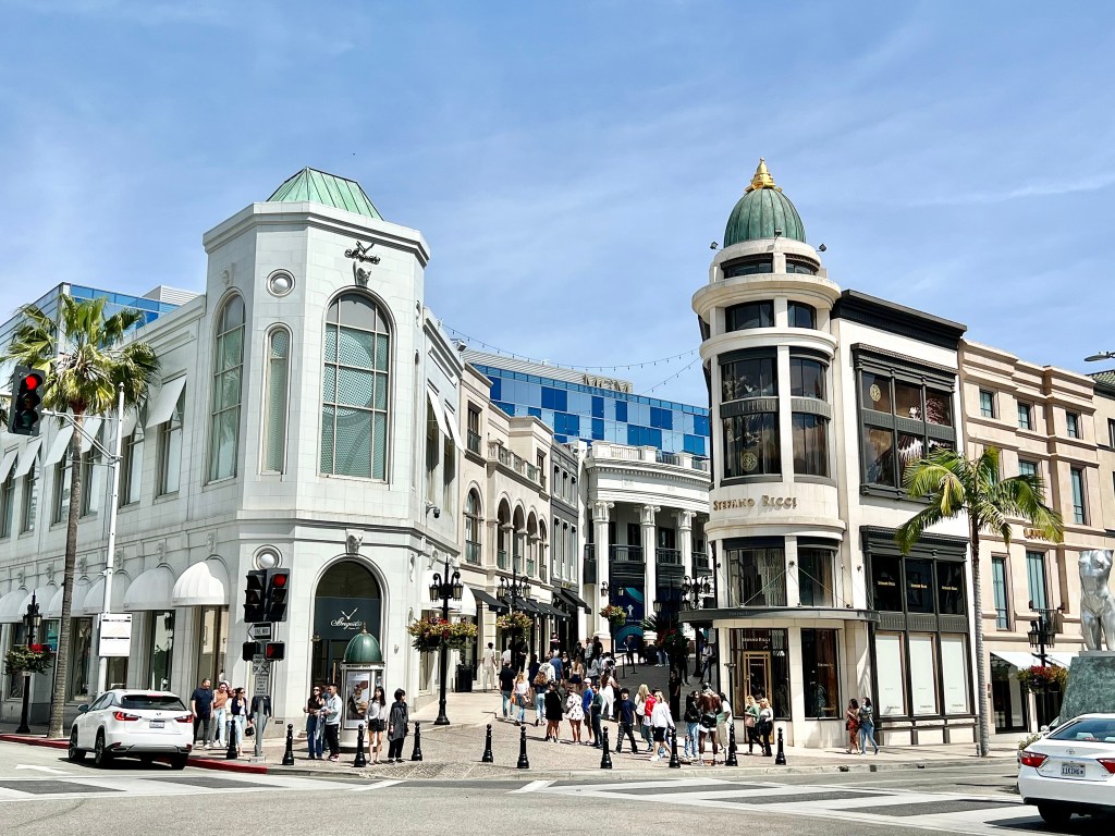 比佛利山莊逛街主要以羅迪歐大道 (Rodeo Drive)和滿滿歐洲風情的二號羅迪歐大道(Two Rodeo)為主,羅迪歐大道上有許多國際精品品牌和米其林餐廳,最熱鬧的地方是從威爾希爾大道(Wilshire Boulevard)到聖莫妮卡大道(Santa Monica Boulevard)這一段。