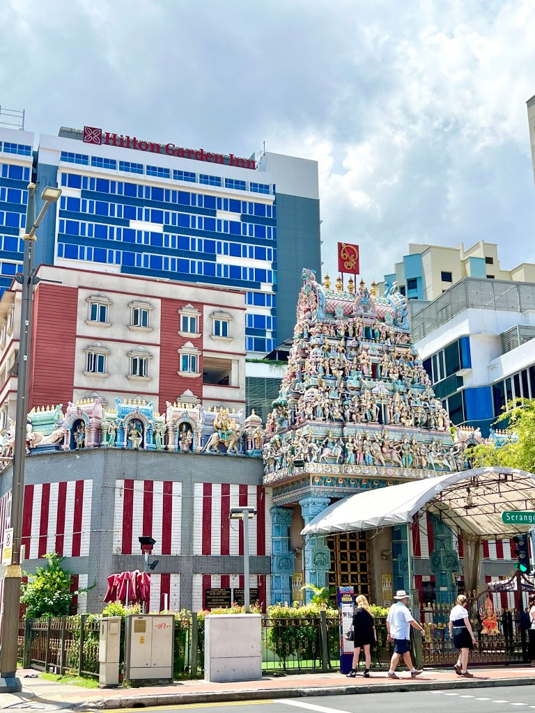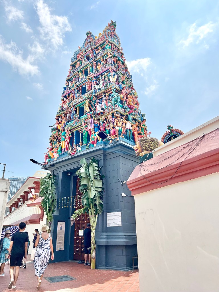 新加坡最古老的印度教寺廟—馬里安曼興都廟,也在牛車水區域,裡面供奉的是掌管雨水的馬里安曼女神,鮮豔雕像在中國城裡面特別顯眼。