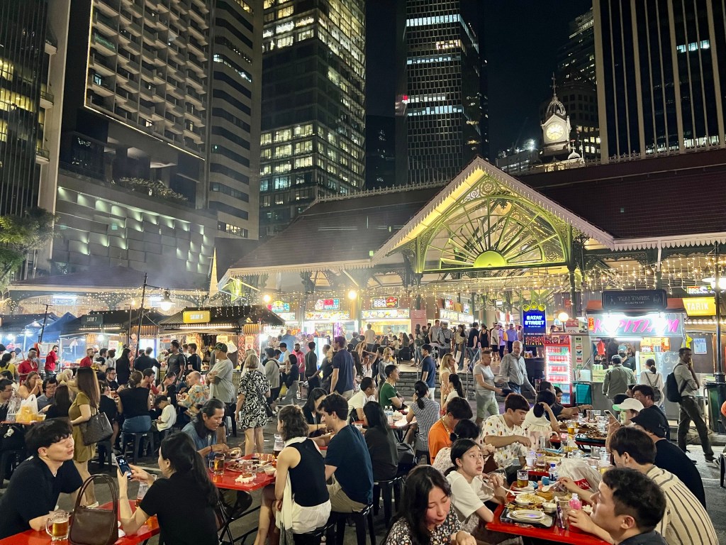 室內攤位各國平民美食應有盡有,不管想吃什麼,所有願望都能在這裡一次實現~最經典的是晚間限定的露天沙嗲一條街,只要19:00鐘聲一響,就會開始封街擺桌椅,大家紛紛入座吃沙嗲喝啤酒,氣氛非常熱鬧!在新加坡金融區黃金地段的馬路上,悠閒吃沙嗲真的是個超酷超好玩的體驗。