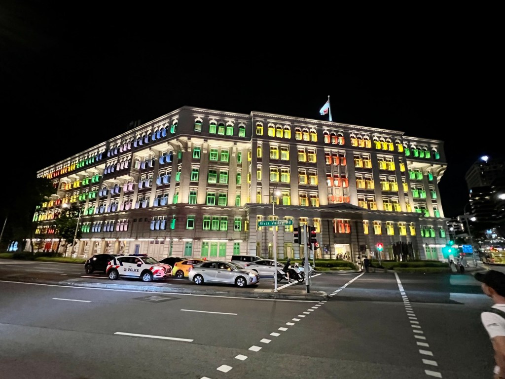 轉角路口的舊禧街警察局是近期IG很夯的打卡景點,彩色窗戶晚上打燈之後看起來更可愛了
